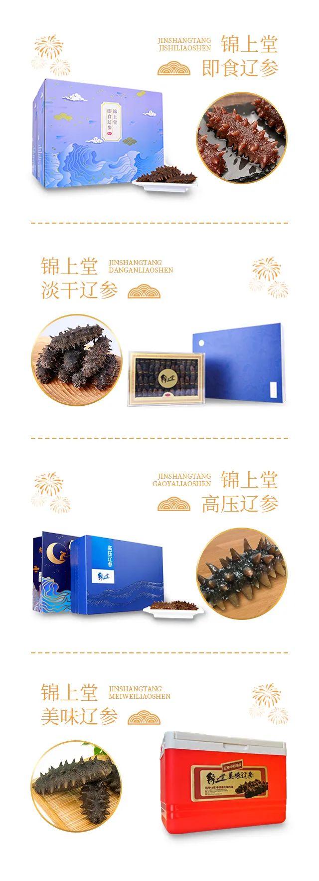 家人們,眼瞅著2022年的春節(jié)就要掄著膀子走來啦,在外奔波忙碌了一整年的人們也開始大包小包的回家過年了,想到再過幾天就能坐在老家炕頭上嗑瓜子,在熙攘的集市淘一盆好兆頭的花,和家人一起張羅年夜飯,心里對于家和年味又多了許多興奮和期待。屬虎的小伙伴你們24歲了開心嗎?過本命年小紅腰帶置辦妥當了沒?過節(jié)的年貨快買起來哈。今年錦上堂給大家準備了幾款健康美味的海參年貨,都是養(yǎng)生好物,您提溜著走親訪友準受歡迎,都會夸你送禮送到心坎兒上、會疼人兒,攏共4樣兒。